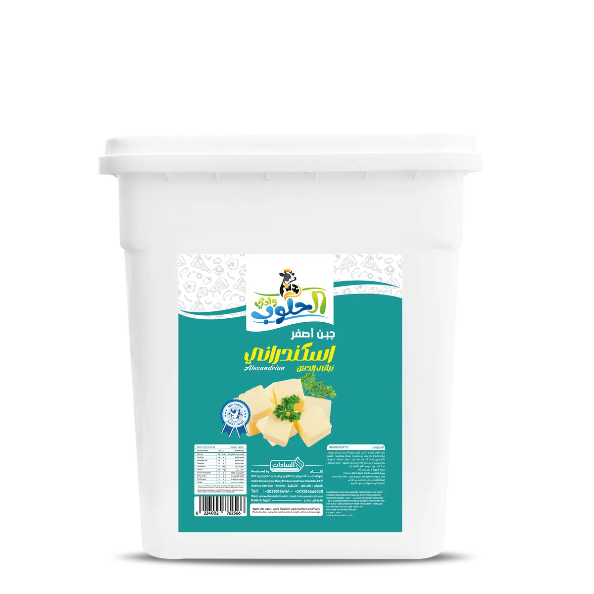 Alexandrian Yellow Cheese from Wadi Alhaloub stands out with its appealing golden color and bold, well-balanced flavor that reflects authentic Alexandrian character. Its firm texture makes it ideal for slicing and use in sandwiches or a wide variety of dishes. Carefully produced according to high quality standards, it delivers a distinctive taste experience suitable for restaurants and professional kitchens.