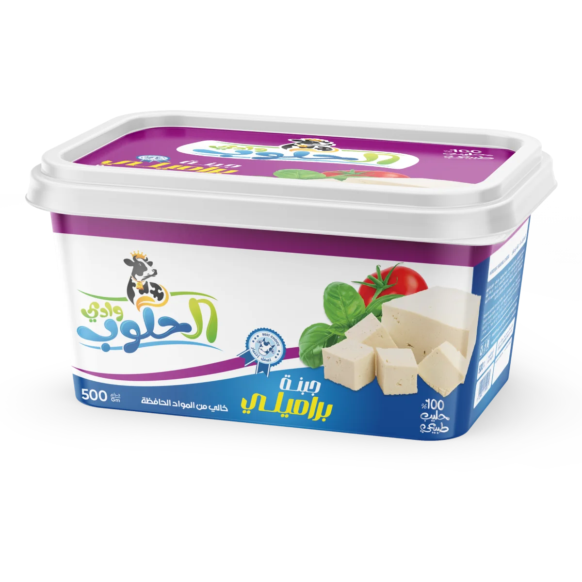 Wadi Alhaloub presents Baramily cheese with its signature touch – smooth, creamy, and crafted in a truly traditional style. Available in 500g packs for convenient everyday use, as well as in 20kg tins to meet the needs of bakeries, restaurants, and bulk buyers. With its purity and premium quality, Baramily cheese is the perfect choice for slicing, crumbling, or simply enjoying as it is — delivering a rich flavor that reflects authentic heritage in every bite.