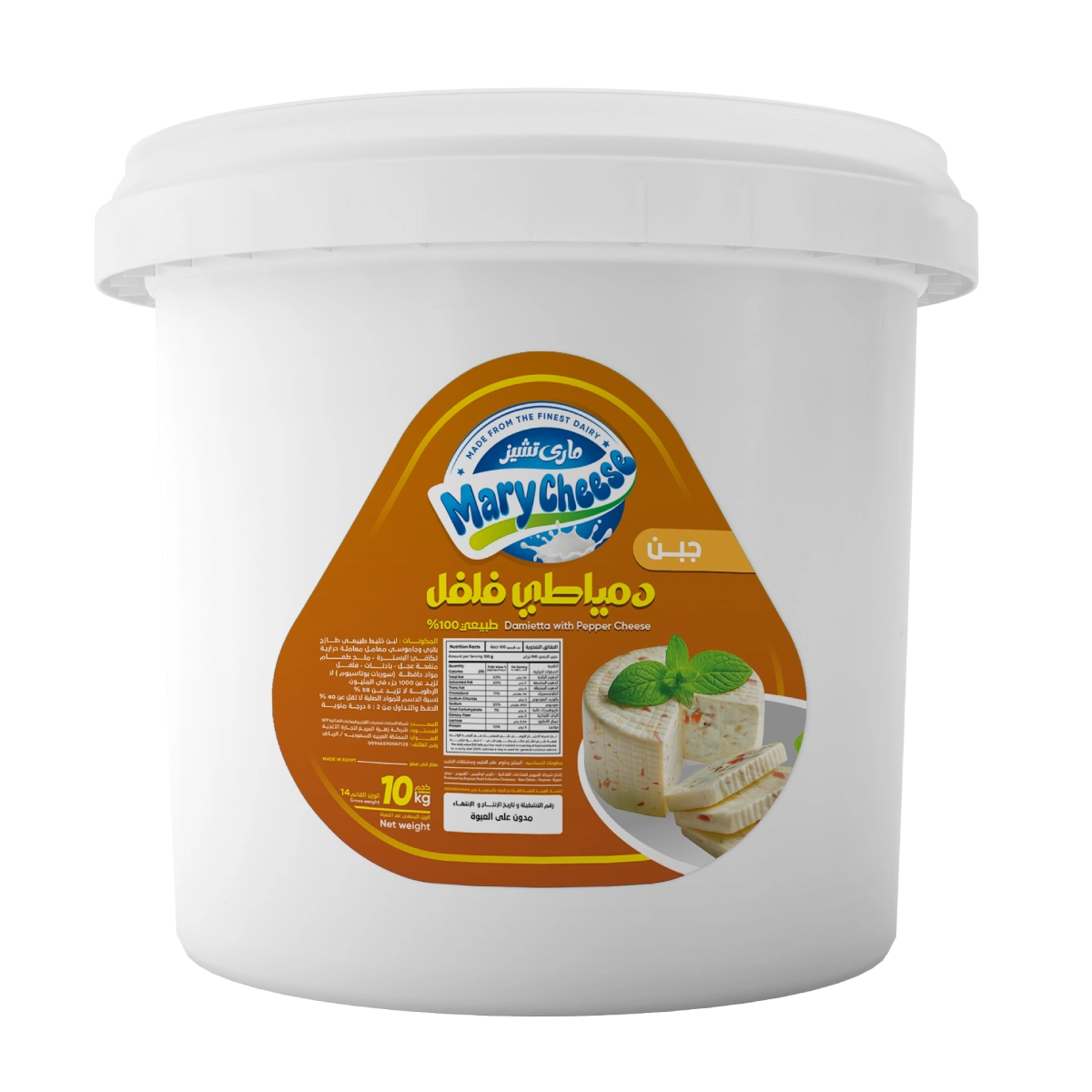 Mary Cheese’s Domiati Cheese is distinguished by its authentic taste inspired by the city of Damietta, known for its balanced saltiness and soft texture, making it a perfect choice for traditional cheese lovers. Carefully prepared using time-honored methods, it retains its unique flavor and high quality. Available in a 14 kg pack, it is ideally suited for restaurants and large kitchens, adding a special character to a wide variety of dishes.