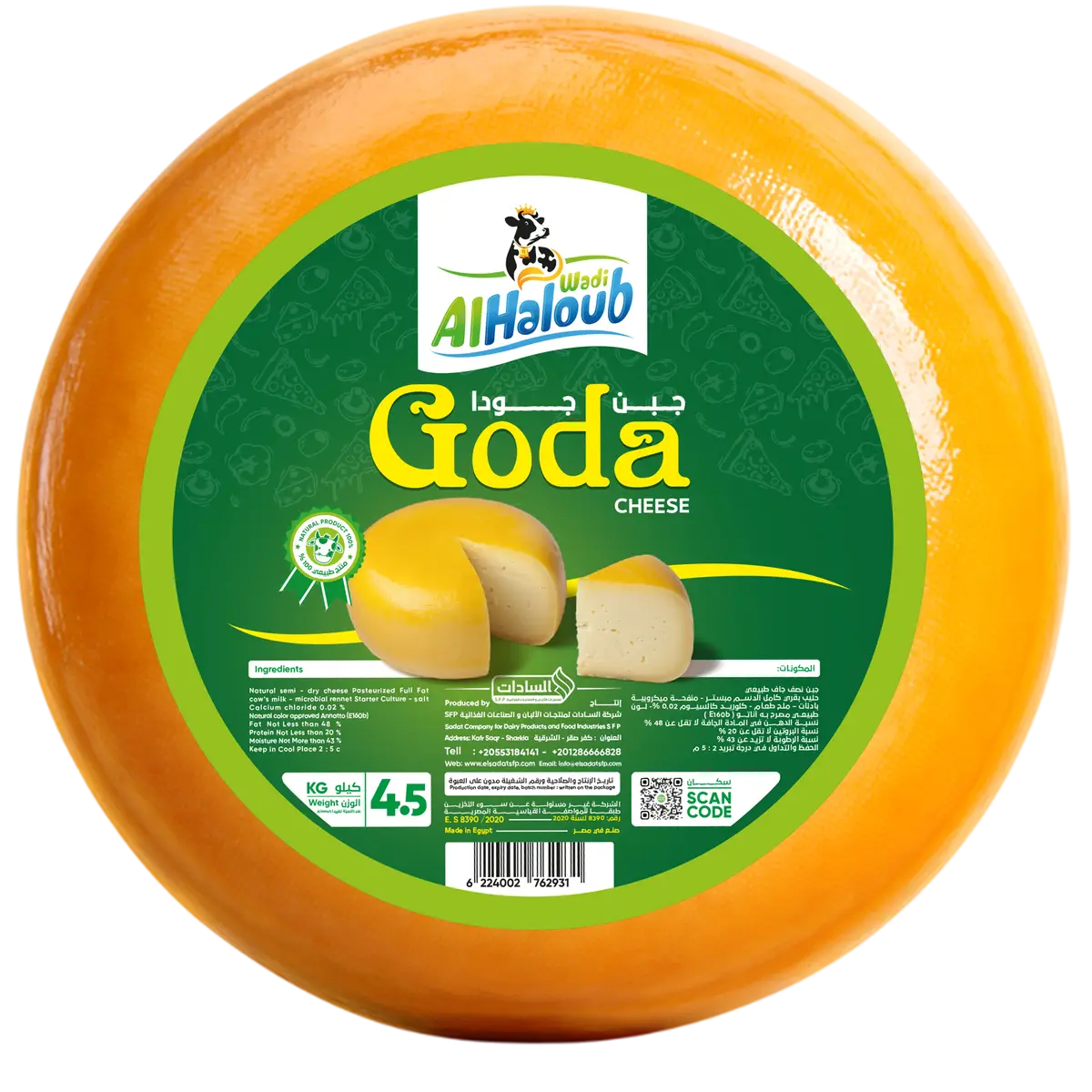 Goda Cheese from Wadi Alhaloub is distinguished by its rich, well-balanced flavor and smooth texture that makes it easy to slice and use in a variety of recipes. Known for its creamy taste and distinctive character, it is ideal for sandwiches, hot dishes, or serving as part of appetizers. Carefully crafted to the highest quality standards, it delivers consistent flavor and a premium experience for both home and professional use.
