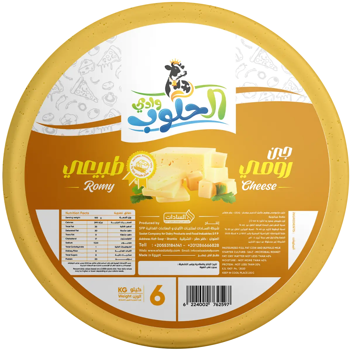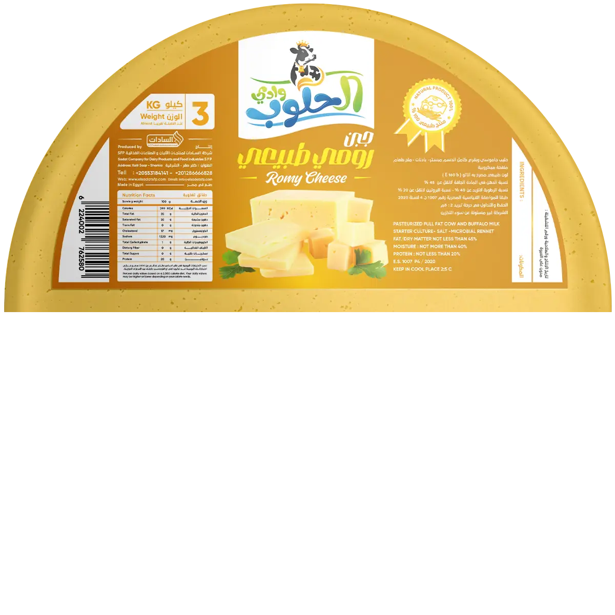 Bold, aged, and full of character — Wadi Al Hiloub Romy Cheese is the perfect choice for those who love deep flavor and rich aroma. Whether sliced for breakfast, grated over pasta, or paired with bread and olives, this Egyptian classic adds a sharp, savory kick to any bite.