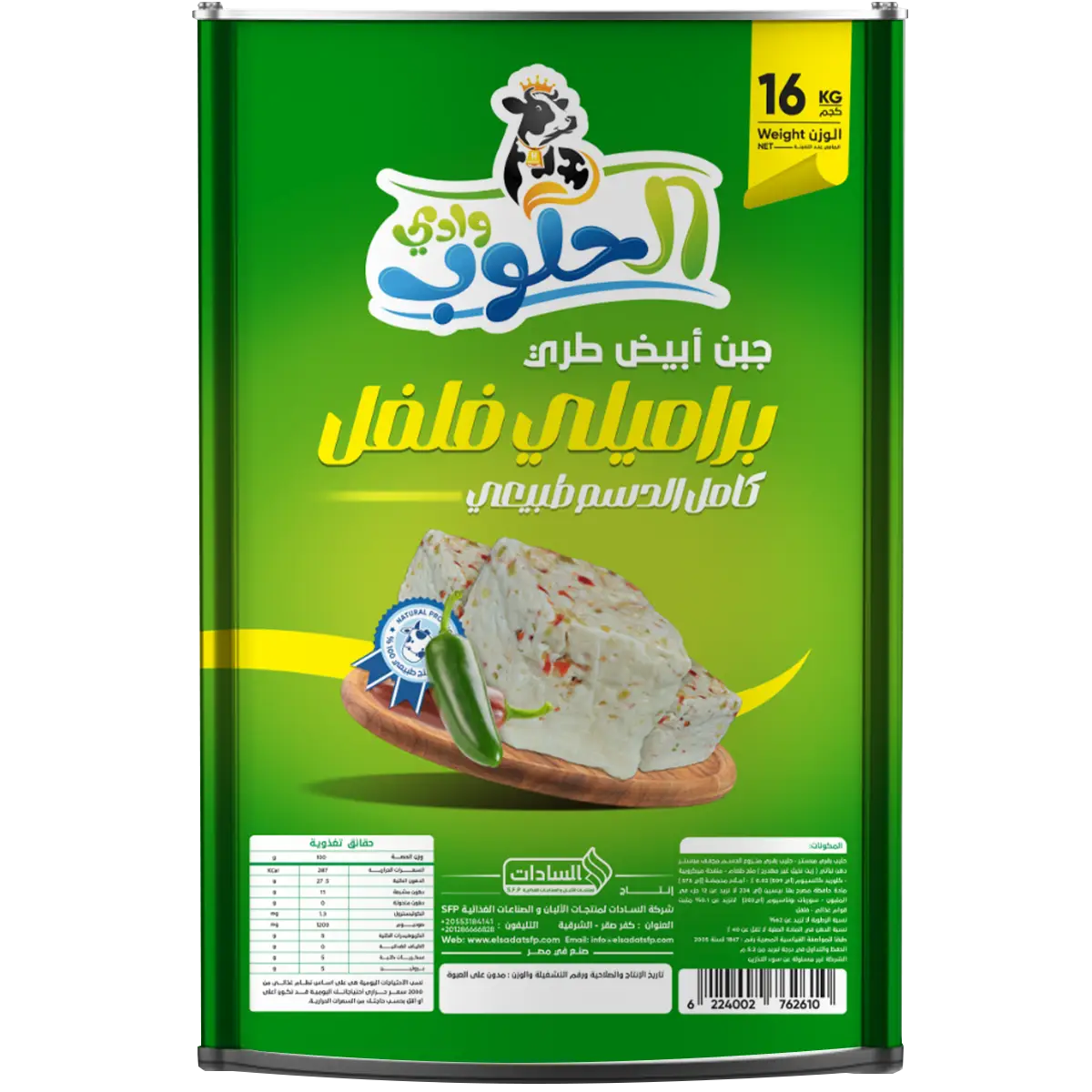 تقدّم وادي الحلوب الجبنة البراميلي بلمستها الخاصة التي تجمع بين النعومة والقوام الكريمي والمذاق التقليدي الأصيل. متاحة في علب 500 جرام لتناسب الاستخدام المنزلي اليومي، وكذلك في صفائح 20 كيلو لتلبي احتياجات المطاعم والمخابز ومحبي الشراء بكميات كبيرة. بفضل نقائها وجودتها العالية، تعدّ البراميلي الخيار الأمثل للتقطيع، الفتّ، أو الاستمتاع بها كما هي، لتقدّم لك طعماً غنياً يعكس التراث الأصيل مع كل لقمة.